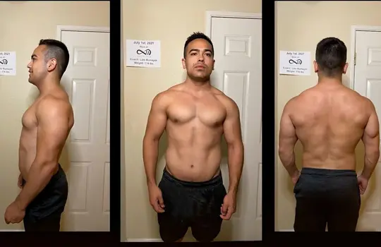 By the 30-day mark, John Doe's transformation was unmistakable. Still avoiding heavy exercise, he shed noticeable fat, with his body fat dropping significantly, and his abs started to faintly outline. His energy stayed high throughout the day, and friends began commenting on his slimmer, more defined look, all thanks to MuscleForge's effortless impact.